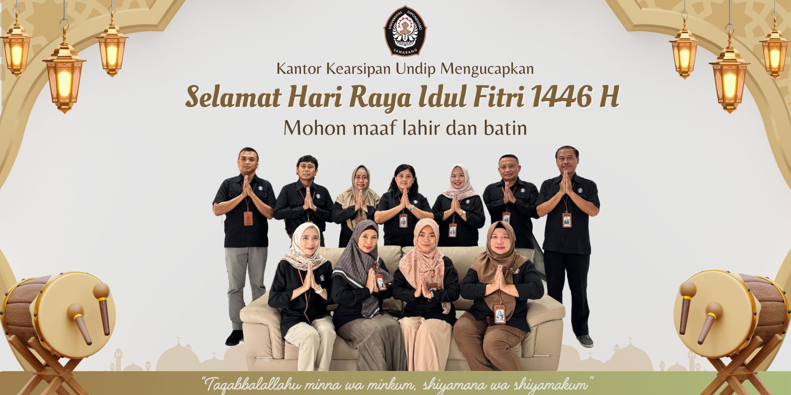 Kami segenap Keluarga Besar Kantor Kearsipan Undip mengucapkan “Selamat Idul Fitri 1446 H mohon maaf lahir dan batin, taqabbalallahu minna wa minkum, shiyamana wa shiyamakum”. Semoga di hari yang fitri ini, kita diberikan keberkahan, kebahagiaan, serta semangat baru dalam menjaga dan merawat arsip sebagai warisan berharga bagi generasi mendatang.
